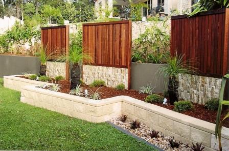 As seen in the landscape before and after photos the job required the supply and construction of block retaining walls, paving, drainage and automatic irrigation.